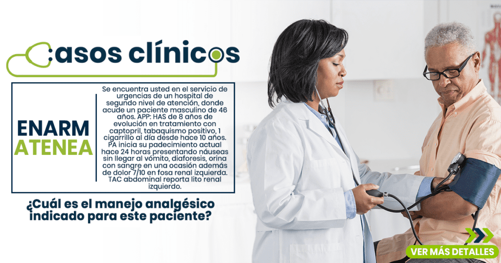 Se encuentra usted en el servicio de urgencias de un hospital de segundo nivel de atención, donde acude un paciente masculino de 46 años. APP: HAS de 8 años de evolución en tratamiento con captopril, tabaquismo positivo, 1 cigarrillo al día desde hace 10 años. PA inicia su padecimiento actual hace 24 horas presentando nauseas sin llegar al vómito, diaforesis, orina con sangre en una ocasión además de dolor 7/10 en fosa renal izquierda. TAC abdominal reporta lito renal izquierdo.